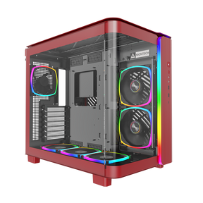 Transform dit setup til noget spektakulært med Montech KING 95 PRO - et kabinet der kombinerer elegant curved glas med professionel dual-chamber funktionalitet. Det røde design gør dit setup til et visuelt statement, mens den patenterede teknologi leverer den køling og fleksibilitet, som dit high-end hardware fortjener.